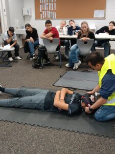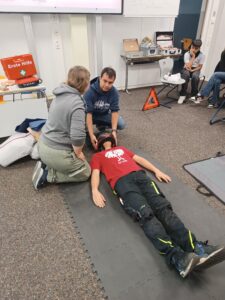 Am 15. und 16.11.2025 fand in der Messelbergschule Donzdorf ein Erste-Hilfe-Kurs für den Führerschein statt. 14 Schülerinnen und Schüler aus den Klassen 9 und 10 lernten unter der Leitung von Stefan Holm, wie man in Notfallsituationen richtig handelt. Behandelt wurden unter anderem die Grundlagen der Ersten Hilfe, das richtige Verhalten am Unfallort, das Absetzen eines Notrufs, lebensrettende Sofortmaßnahmen sowie die Versorgung von Verletzten. Auch die stabile Seitenlage und die Herz-Lungen-Wiederbelebung mit und ohne AED wurden praktisch geübt. Zum Abschluss erhielten alle Teilnehmenden eine offizielle Bescheinigung für den Führerscheinerwerb.